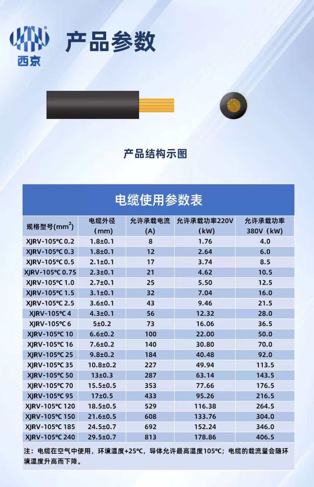 西京牌 XJRV105 0.2-240mm2 汽车用线 105℃聚氯乙烯绝缘软电缆